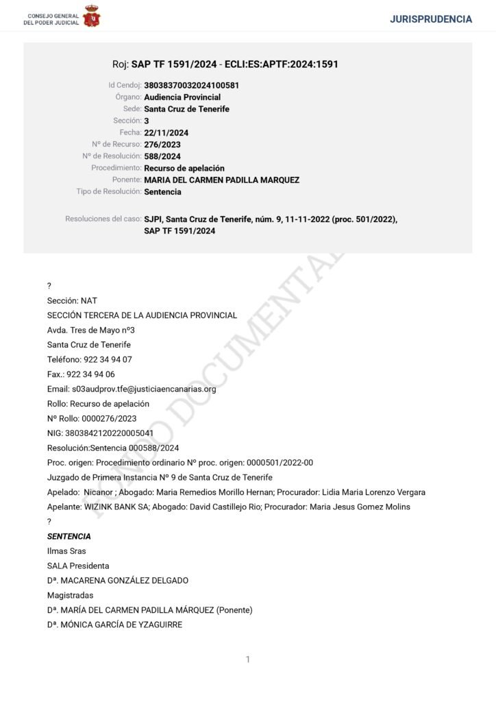 El 22 de noviembre de 2024, la Audiencia Provincial de Santa Cruz de Tenerife (Sección 3ª) confirmó en apelación la nulidad de un contrato de tarjeta revolving de Wizink Bank, defendiendo nuevamente a un consumidor atrapado en un crédito con intereses desproporcionados.